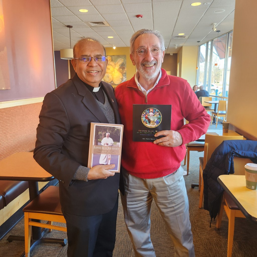 Pope Leo was presented an inscribed copy of Love Is a Journey at the Vatican on behalf of the author by Auxiliary Bishop Emeritus of the Diocese of Providence, Robert Evans!